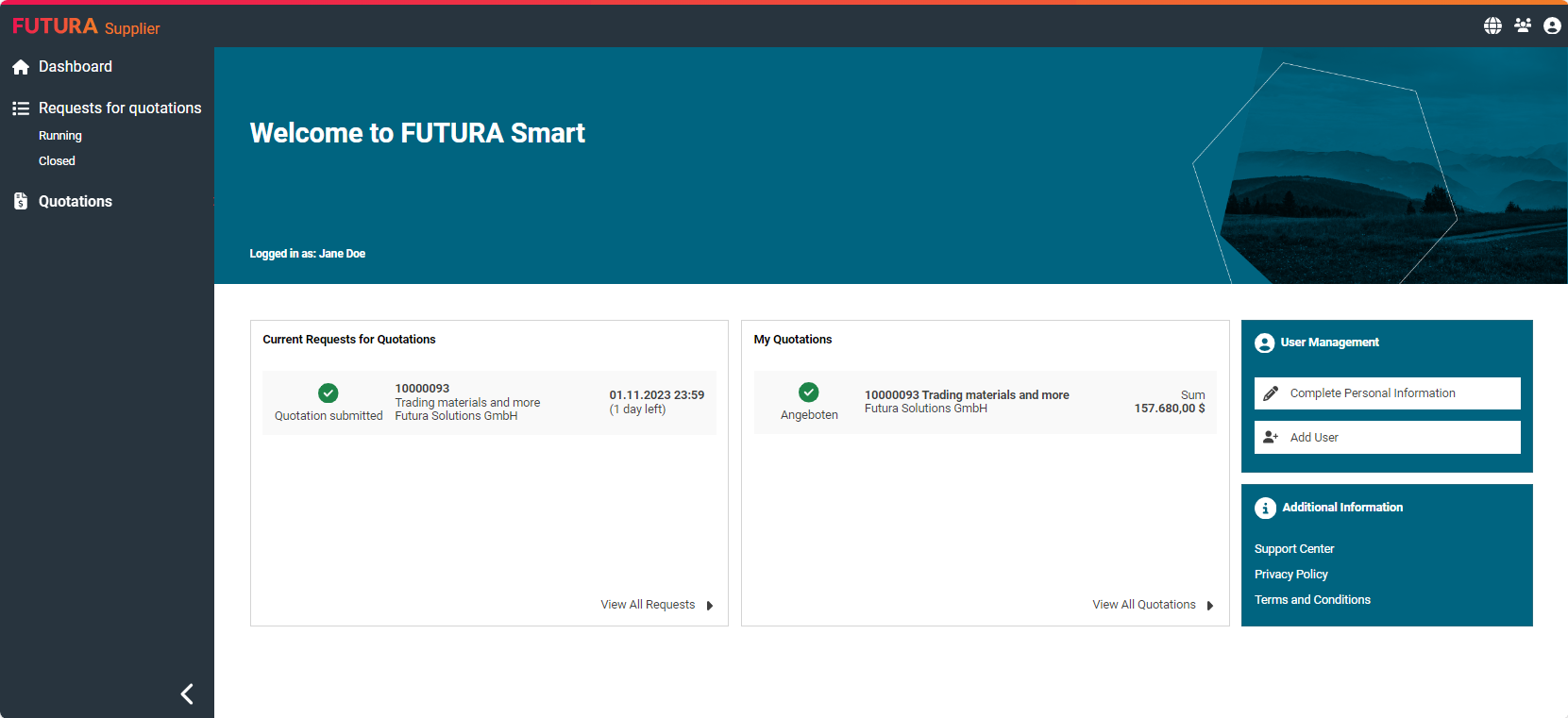 The articles and pages in this Support Center deal with the use of FUTURA Smart for suppliers. FUTURA Smart supports purchasers and suppliers in the processing of requests for quotation and quotations.