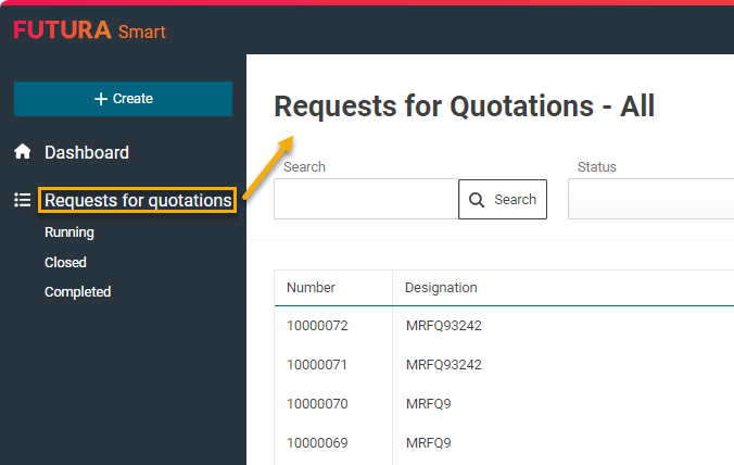 With a mouse click on the menu "Requests for quotation", all transactions will be displayed in a glance, regardless of their status. This will give you a complete list of all available requests.
