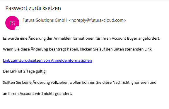 En cliquant sur le bouton "To RFQ" dans l'e-mail d'invitation, vous pouvez ouvrir le portail de connexion à FUTURA Smart.