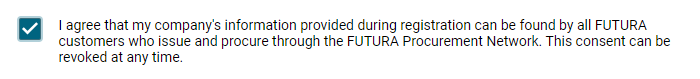 Con la pubblicazione di una richiesta da parte di un'azienda acquirente, riceverete un'e-mail con la quale potrete registrare la vostra azienda e il primo utente per FUTURA Smart. Facendo clic con il mouse sul pulsante "To the registration", si verrà reindirizzati al processo di registrazione e si inizierà a gestire i dati aziendali.
