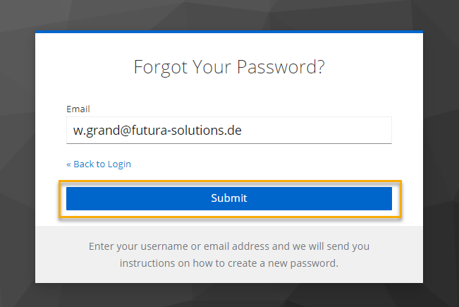 Knop "Submit" (Verzenden) om een wachtwoordlink te krijgen