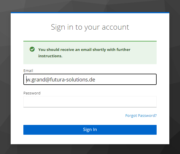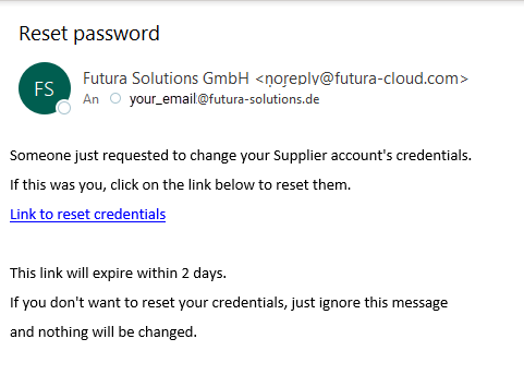 Através do botão "View RFQ" em qualquer e-mail de convite, você pode abrir o portal de login para o FUTURA Smart.