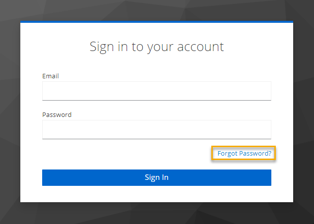 Se você esqueceu sua senha, pode solicitar um link de senha para seu endereço de e-mail. Clique no botão "Forgot Password?":