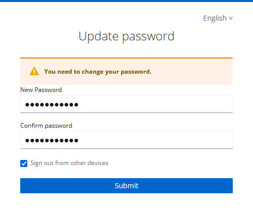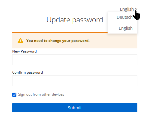 Se a janela de diálogo para atualizar a senha não estiver no idioma desejado, você poderá optar por uma diferente da seguinte maneira: